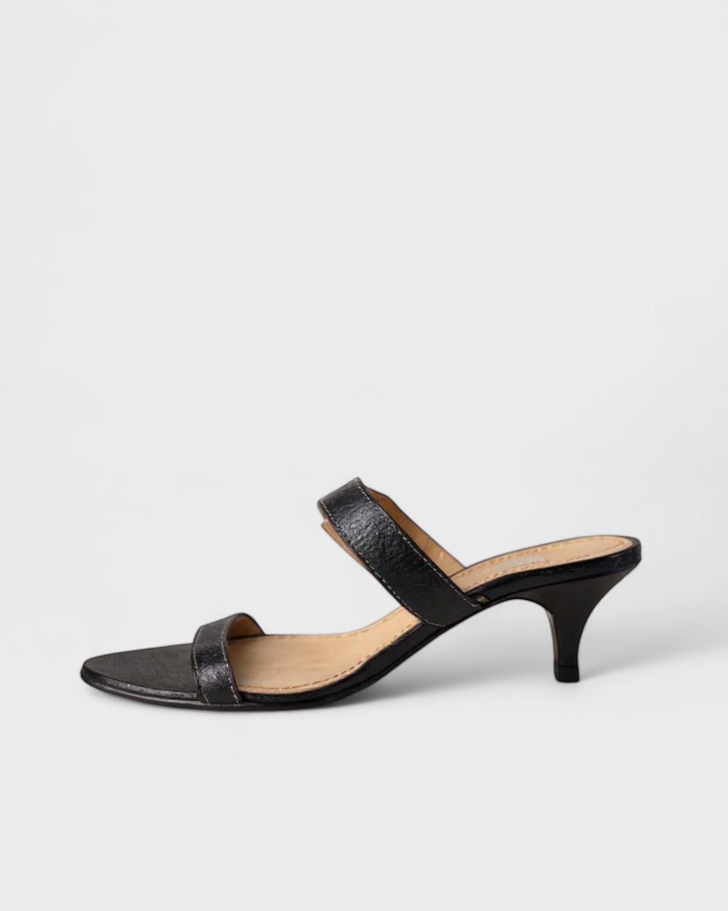Dotées d’une bride fine à l’avant et d’une large lanière avec boucle métallique décorative.